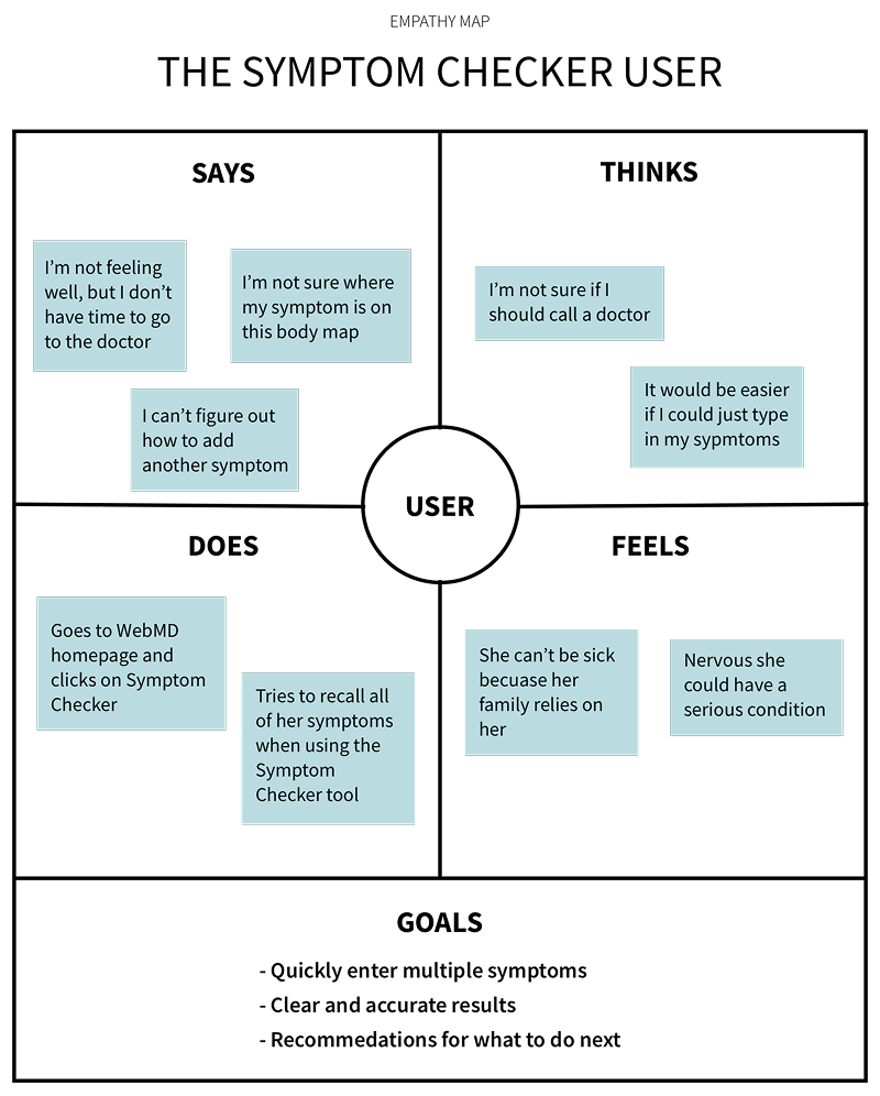 Symptom Checker users feel anxious and need the ability to quickly enter multiple symptoms and clearly understand their results to feel confident when deciding on a treatment.